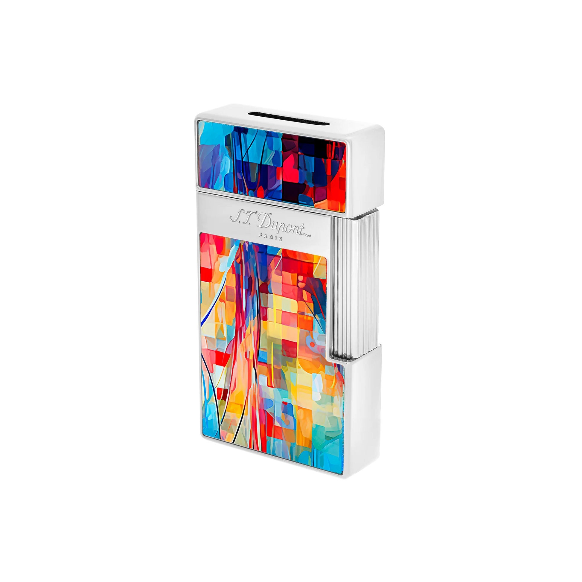 La collezione Graff'ty si ispira alla street art, trasformando accendini e penne in vere e proprie opere d'arte. Colori vivaci e mosaici di rosso, giallo e blu esplodono su Ligne 2, Biggy, Line D Eternity e sugli accessori per sigari (posacenere, tagliasigari, astuccio). Questa collezione invita tutti ad accendere la fiamma della creatività. Accendino Biggy in lacca multicolore e finitura cromata. Dotato di una fiamma a torcia di 2 cm.