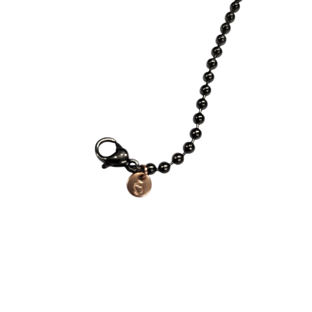 Bracciale in argento PVD nero e piastrina in oro rosa 9kt