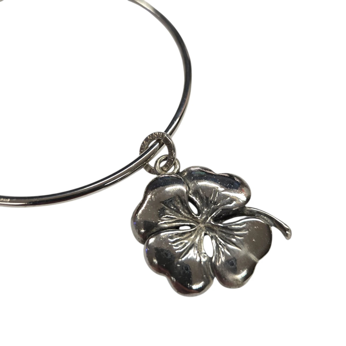 Bracciale rigido in argento 925 con charm quadrifoglio