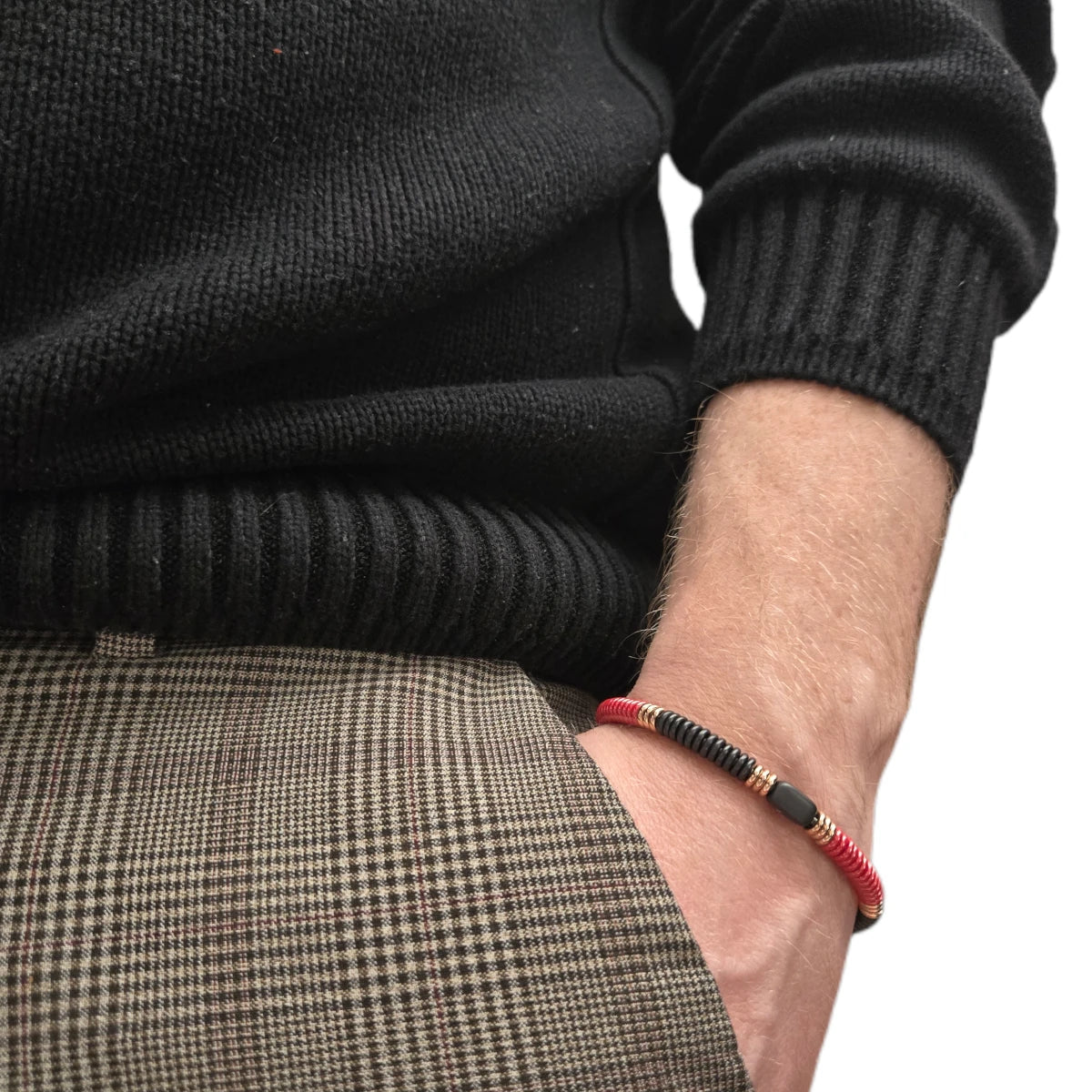 Bracciale Rings Nero Rosso e Dorato Rosa