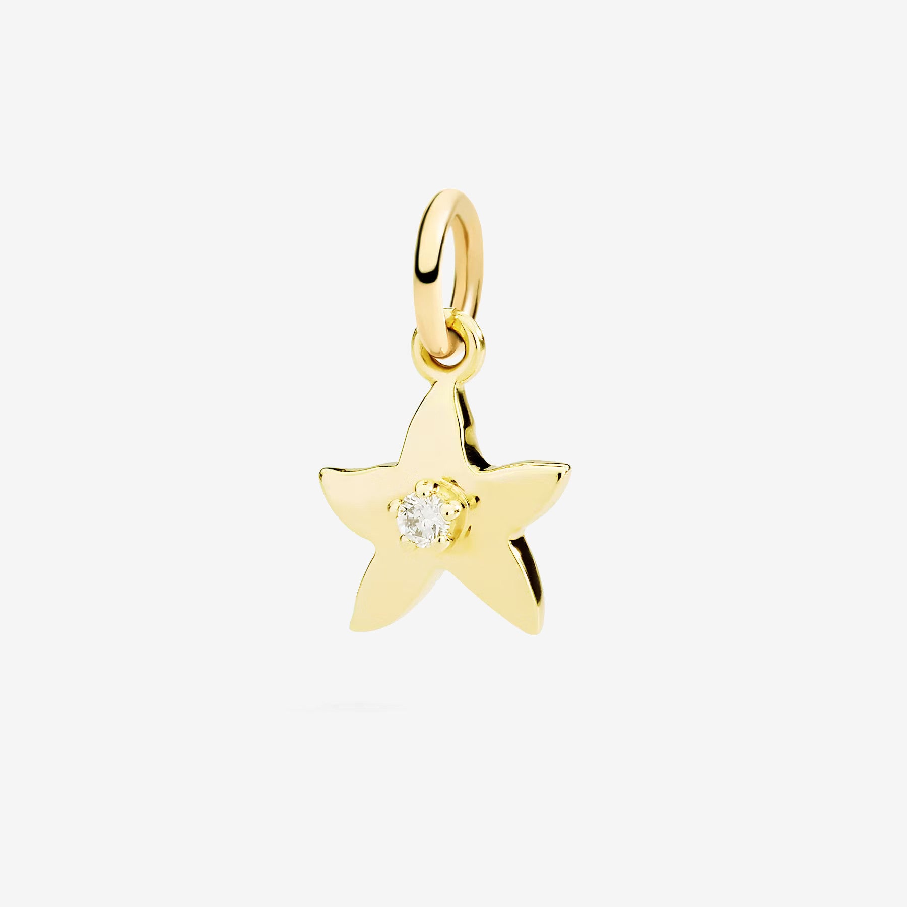 Ciondolo stellina in oro giallo 9K con 1 diamante bianco (ct 0,03). Cordino nero incluso.