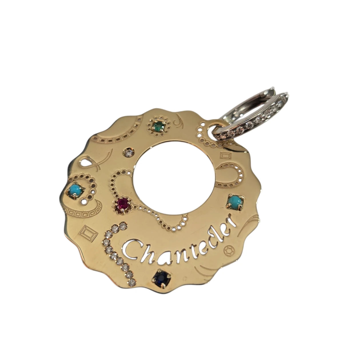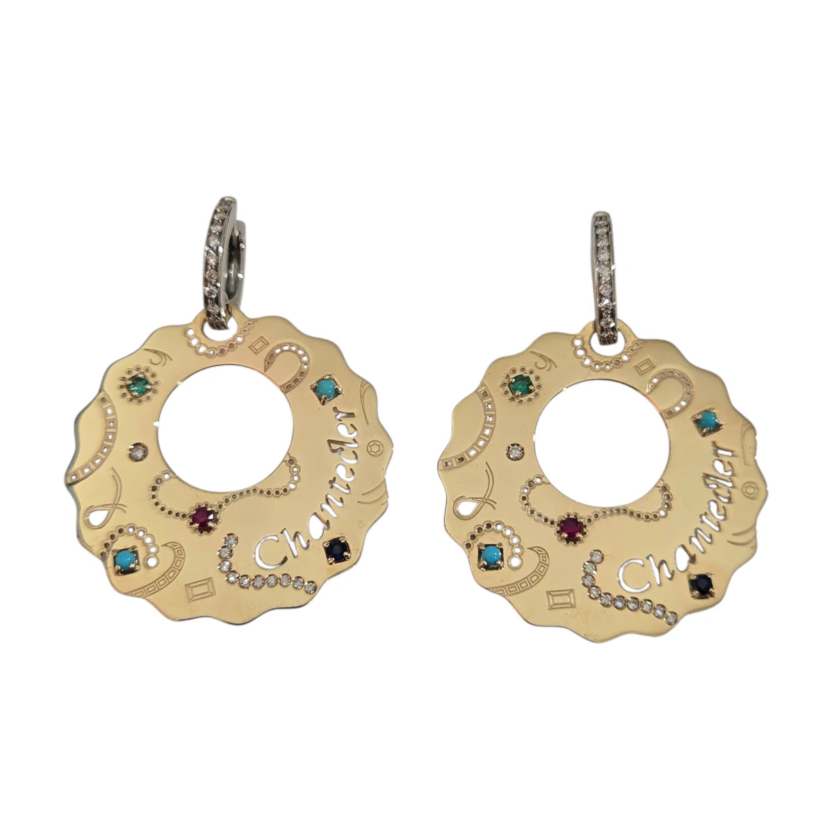 Orecchini Suamèm medi in oro giallo 9Kt, turchese, zaffiri, rubini, smeraldi e diamanti