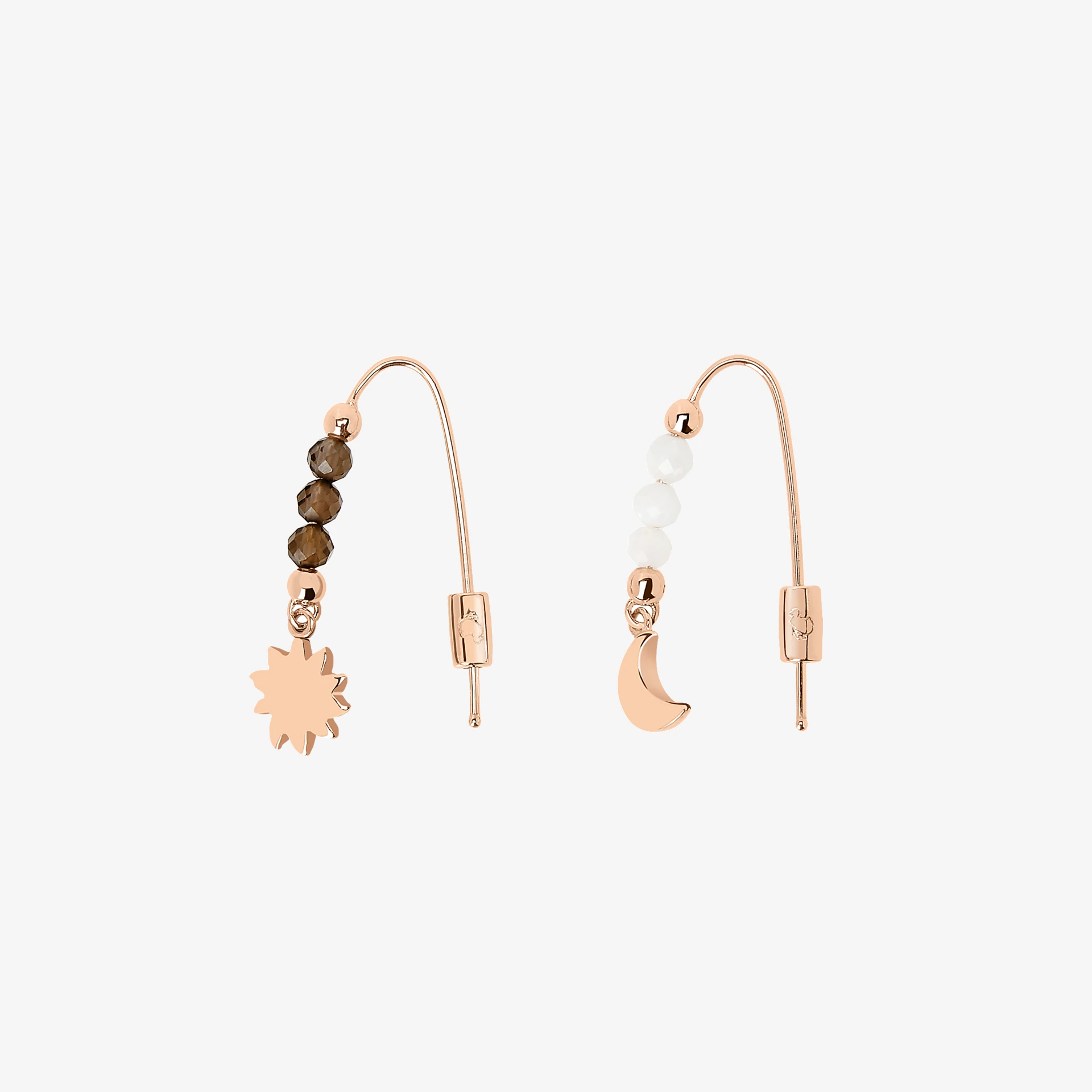 Orecchini pendenti Moon & Sun in oro rosa 9K con quarzo fumè e adularia. Paio.