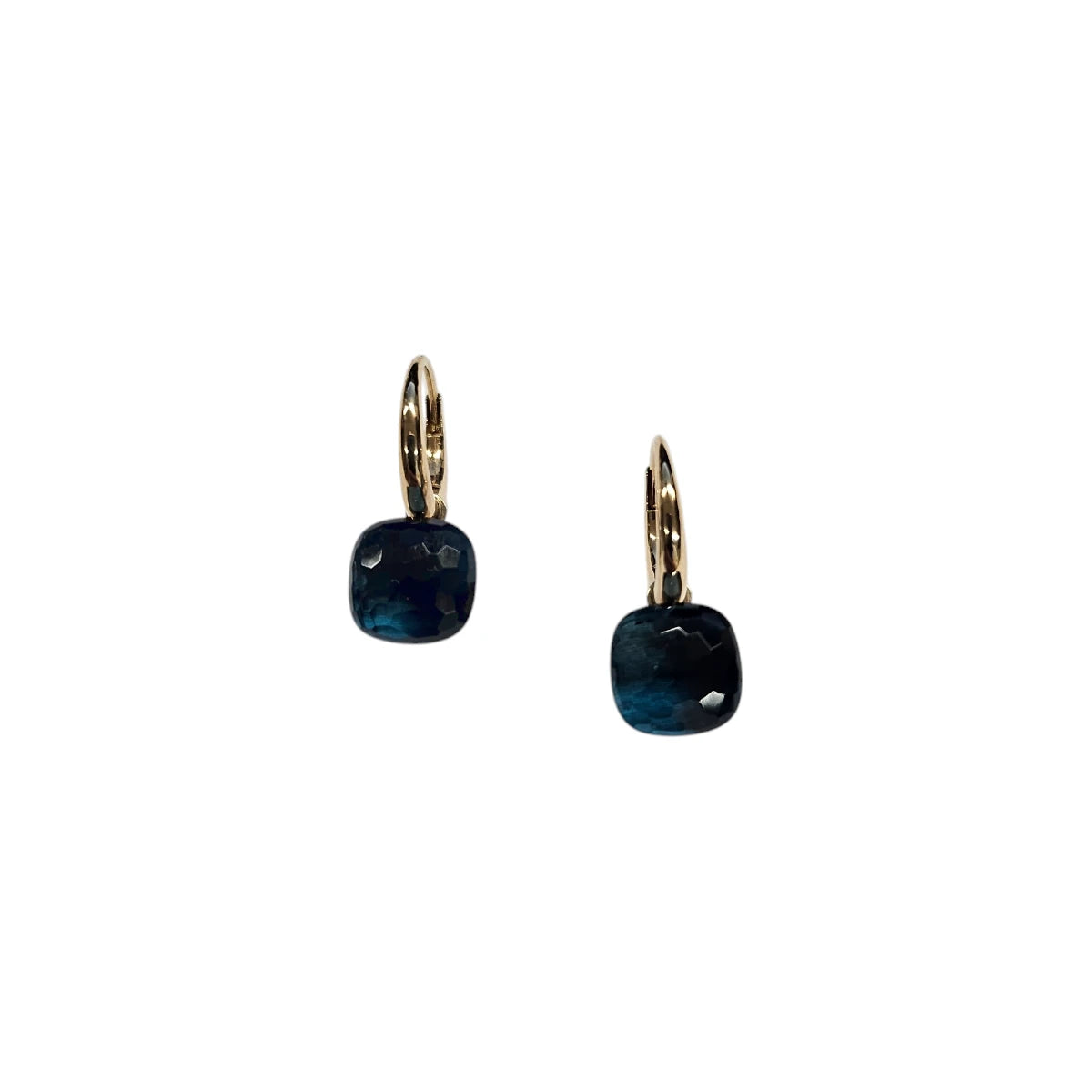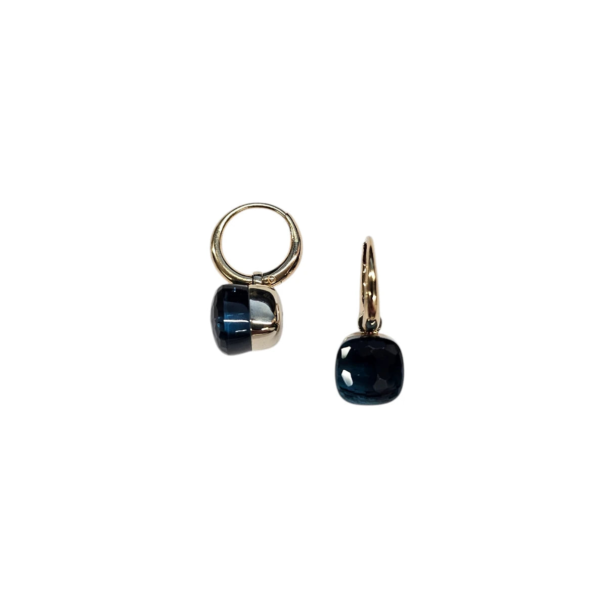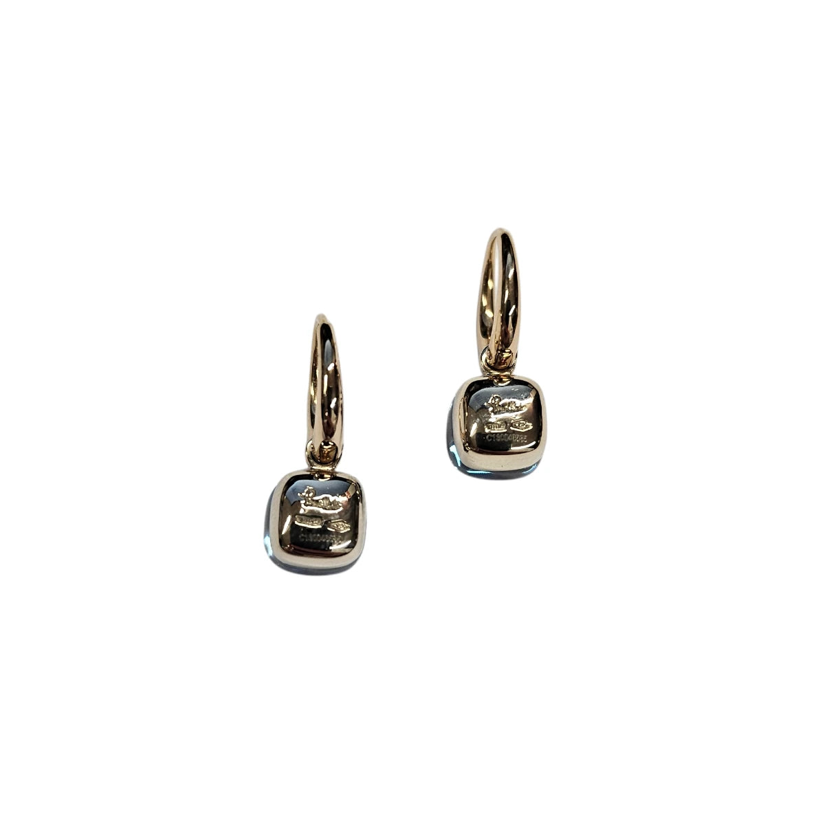 Orecchini in oro rosa e bianco 18k con 2 topazi blu london (≈13 ct)
