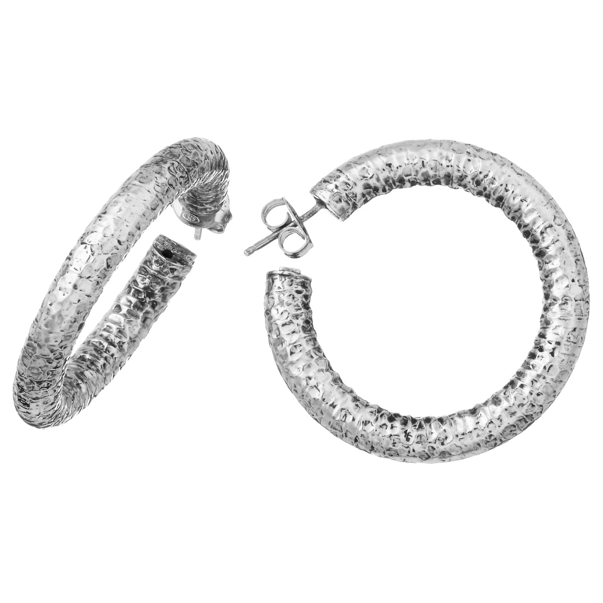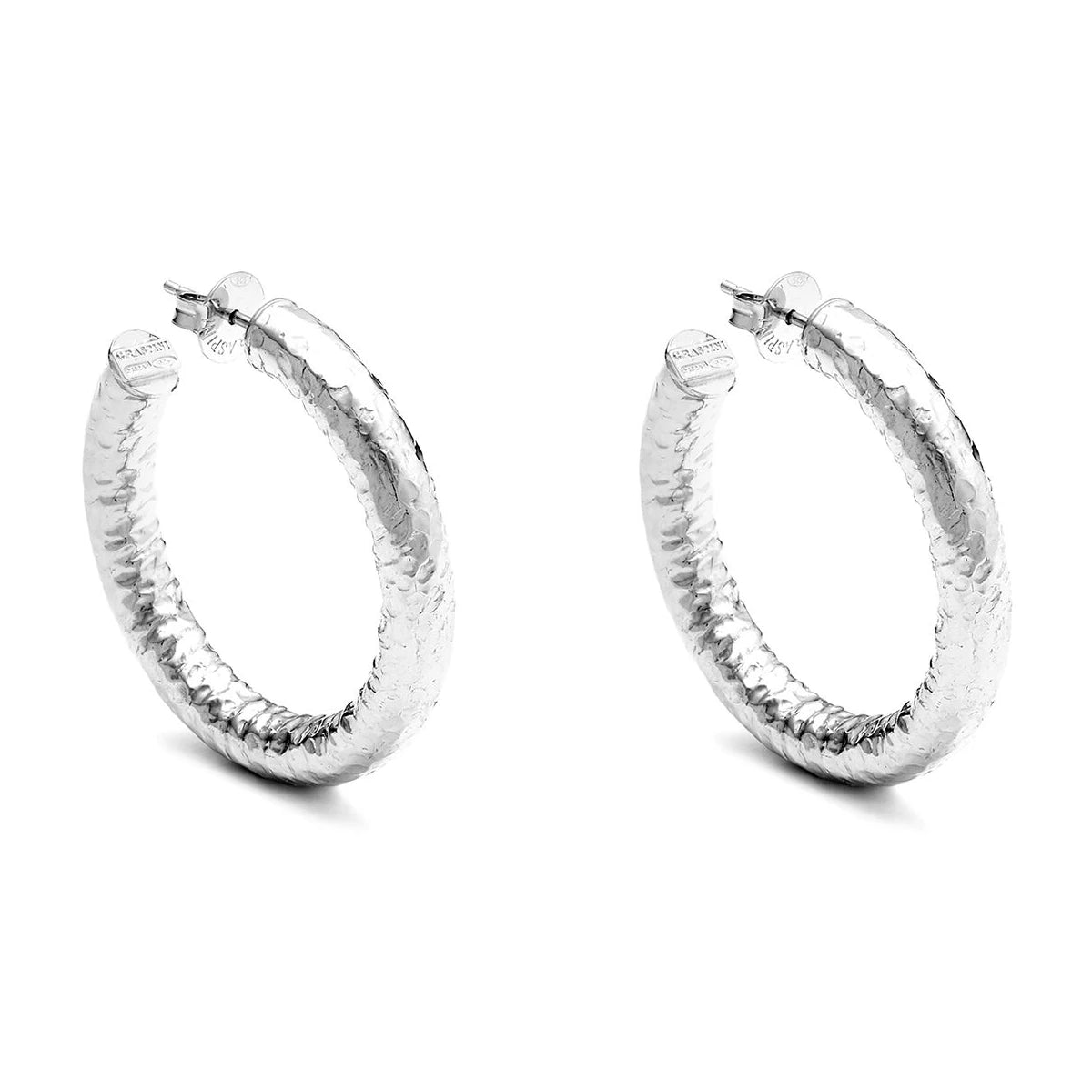 Contemporanei ed essenziali, questi eleganti orecchini portano tanta luce al volto. L'argento martellato a mano regala texture che solo Giovanni Raspini sa realizzare.