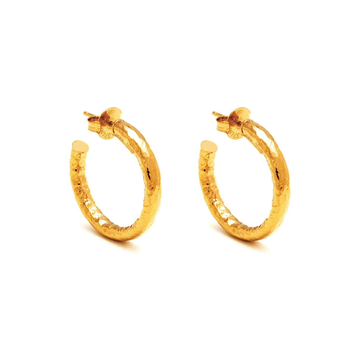 La bellezza iconica di questi orecchini in argento martellato illumina il volto. Riflessi cangianti su texture preziose, come bagliori di stelle lontane. Fatti a mano in azienda.