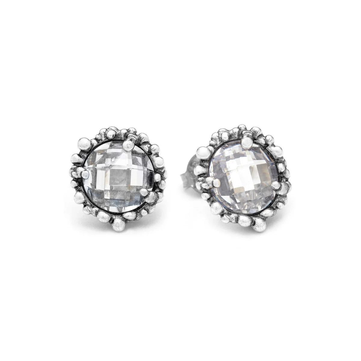 Questi meravigliosi orecchini montano ognuno un grande zircone trasparente che illumina l'argento circostante. Un gioiello versatile, dall'eleganza leggera e contemporanea. Realizzato completamente a mano in azienda.