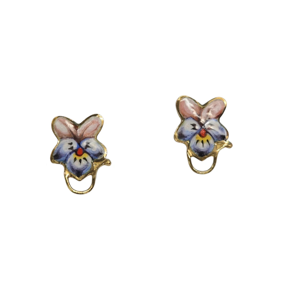 Gli orecchini sono dipinti a mano con smalti a gran fuoco su sagoma in rame. La chiusura e la farfallina sono in oro giallo 18kt