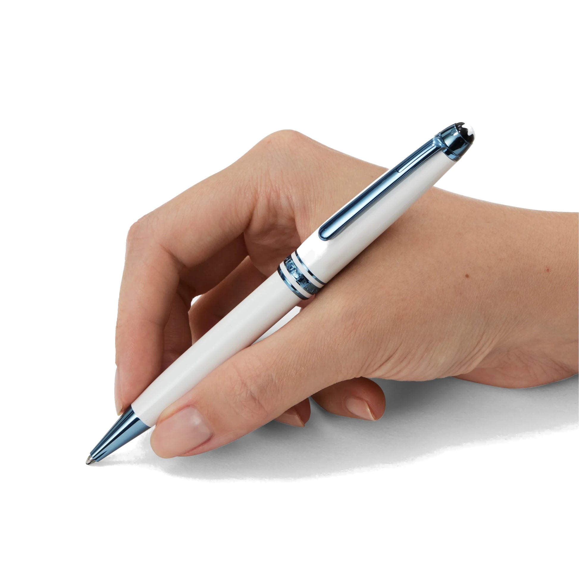 La penna a sfera Meisterstück Glacier Classique, caratterizzata da una pregiata resina bianca, si ispira ai ghiacciai del Monte Bianco, simbolo della nostra dedizione alla qualità superiore e del nostro slancio verso l’esplorazione e l’avventura. Lo strumento da scrittura è impreziosito da dettagli in metallo finitura PVD blu.