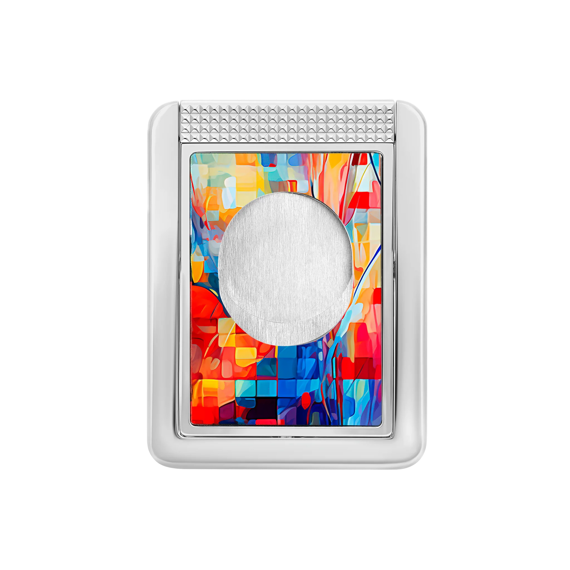 Tagliasigari da appoggio decorato con il motivo Graff'ty in lacca lucida e finitura cromata.